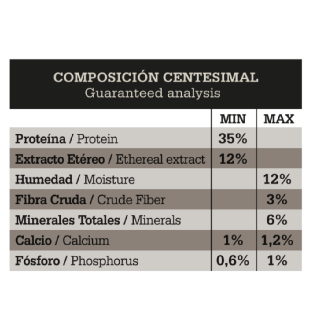 ENERGÍA METABOLIZABLE: EM 85 TC: 3365 / BS: 3823